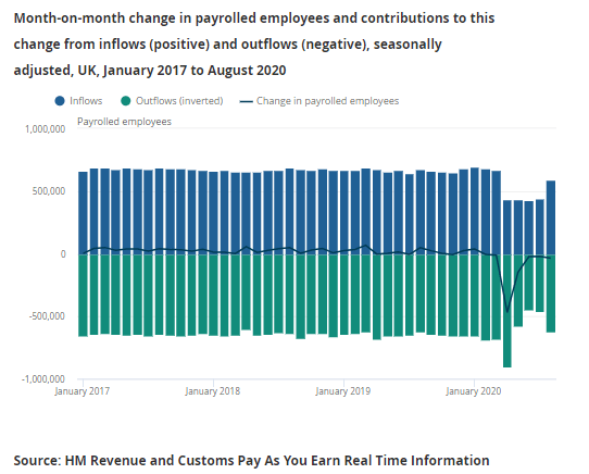 A far better guide to the number of job losses is the experimental PAYE data, which are also timelier (they are already available for August). These suggest that UK payrolls fell by about 706,000 between February and August, with by far the biggest fall taking place in April.