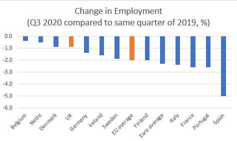 In particular, UK unemployment remains relatively low and the UK has seen a relatively small fall in employment during the pandemic. (The impact on jobs is surely a far better measure of the success or failure of economic policies than the fall in GDP, especially when economic activity is being deliberately curtailed in order to save lives.)