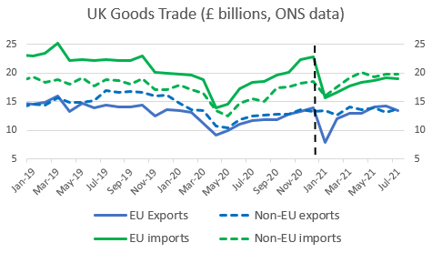 Others will also argue that the delay to the introduction of full border checks means that the negative impact of Brexit on UK-EU trade is only likely to grow. But this is too pessimistic.