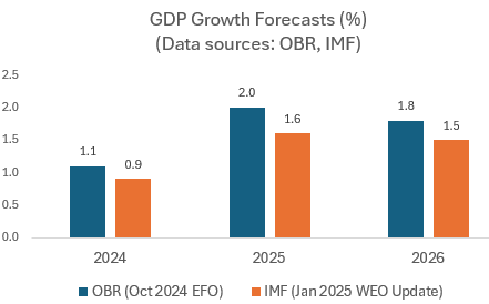 The 0.9% projection for UK GDP in 2024 would require growth of at least 0.5% in the fourth quarter, which we know did not happen. The best we can probably hope for now is zero. And barring a miracle, growth in 2025 is more likely to be around 1.0% than 1.6%.