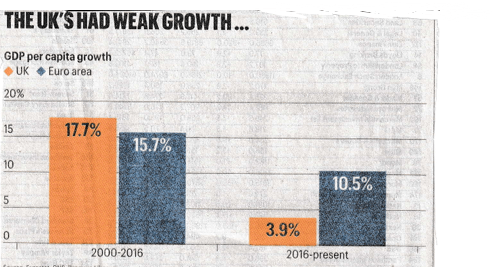 It is correct to say that the UK has significantly underperformed the euro area on this measure since 2016, after marginally outperforming in the period between 2000 and 2016.