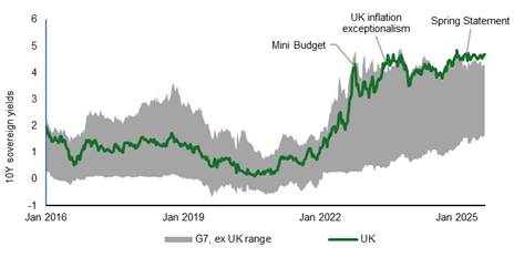 1. Investors are losing confidence in the UK government’s fiscal policies (especially after the failures to curb welfare spending) and are increasingly worried about a ‘doom loop’
