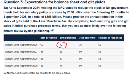 Market participants surveyed by the Bank already expect the pace of QT to be reduced from £100 billion to about £72 billion in the coming year, so the reduction will have to be larger than that to have a significant impact on confidence and yields.
