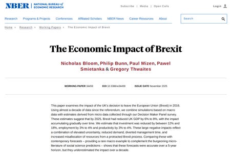 Just to be clear, the NBER paper is a serious piece of work by serious economists. It would also be odd to insist that Brexit has had no negative effects at all. But it is entirely reasonable to debate both the magnitude and the duration of these effects, especially when the estimates presented here are so extreme.