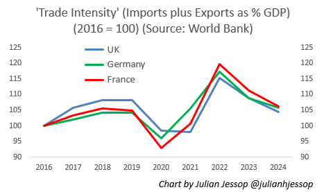 Remember that, as part of its assessment of the impact of Brexit on productivity over the longer term, the OBR has assumed that the volume of UK imports and exports will both be 15% lower than if we had remained in the EU. This covers total trade, both goods and services, and with the whole world, not just the EU.