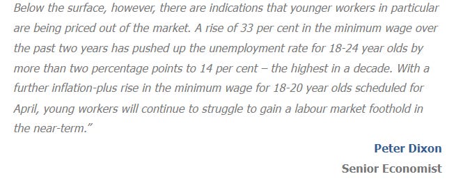 There is now a broad consensus that the increases in the national minimum wage have gone too far too and are damaging the job prospects of young people.